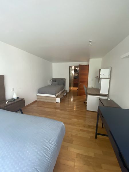 Hermoso departamento en el conjunto más exclusivo de Polanco, cuenta con 3 recámaras (dos con vestidor y una con closet), 3 baños y 2 estacionamientos ,cuarto de servicio, área de lavado, balcón, pisos de madera, estilo moderno. Con muebles renta $120,000